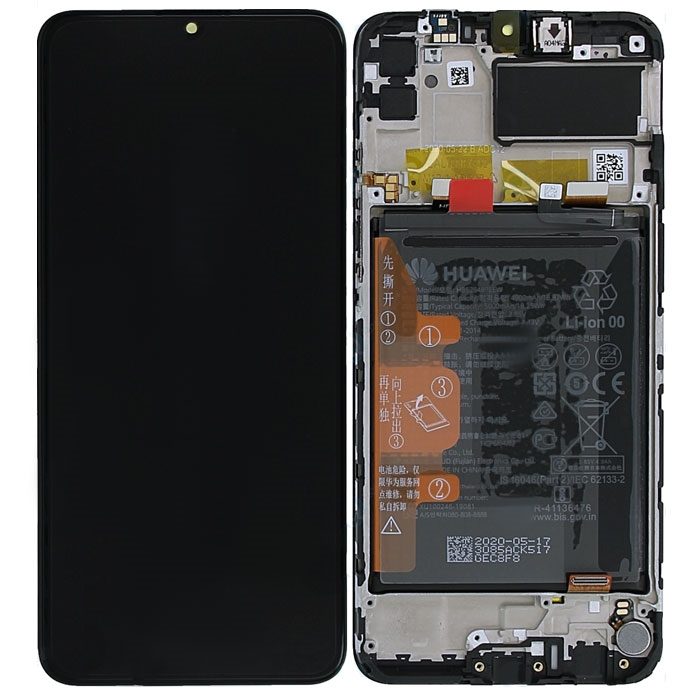 Γνήσια Οθόνη Και Μηχανισμός Αφής Με Πλαίσιο Και Μπαταρία Huawei Y6p / Honor 9A Μαύρο 02353LKV (Service Pack)
