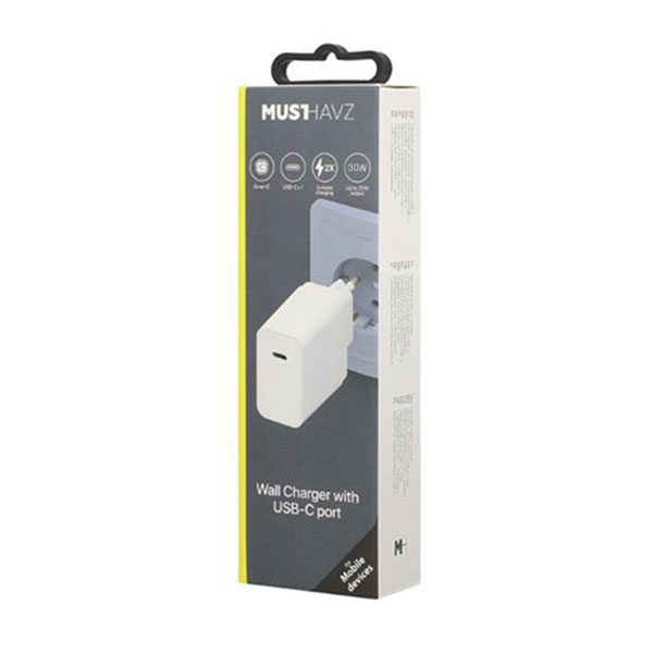 Φορτιστης Σπιτιου Musthavz Με Θυρα Usb C 30W Ασπρος