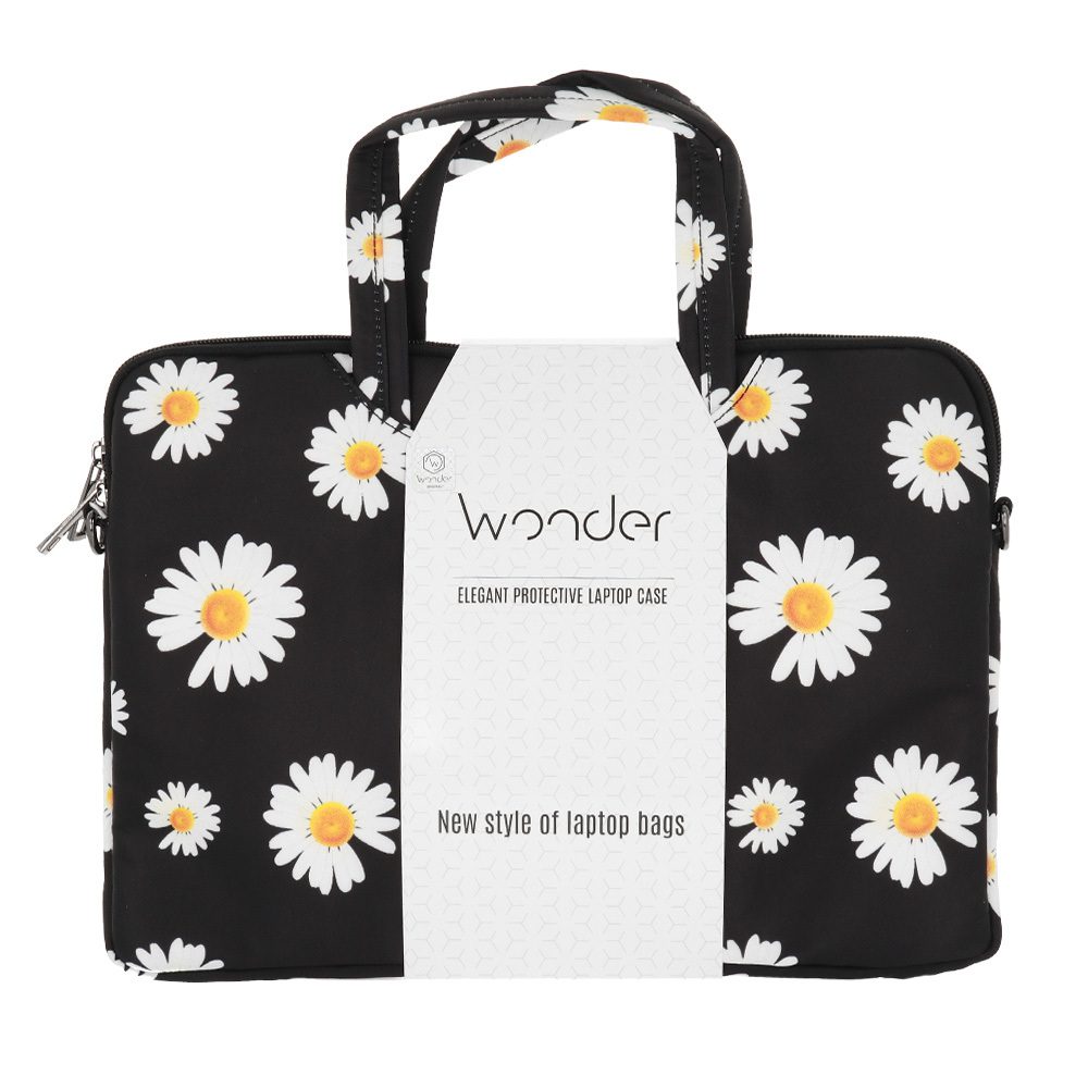 Wonder Briefcase Laptop 15-16 inches black daisies